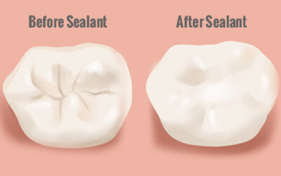 Dental sealants are thin plastic coatings that cover the chewing surfaces of the back teeth, called the molars. Sealants are painted into the molars’ grooves and nooks to “seal” these grooves with a barrier against food debris and bacteria. We recommend children get sealants as soon as their permanent back teeth come in. Sealants can usually last a decade and will harmlessly dissolve as you age.